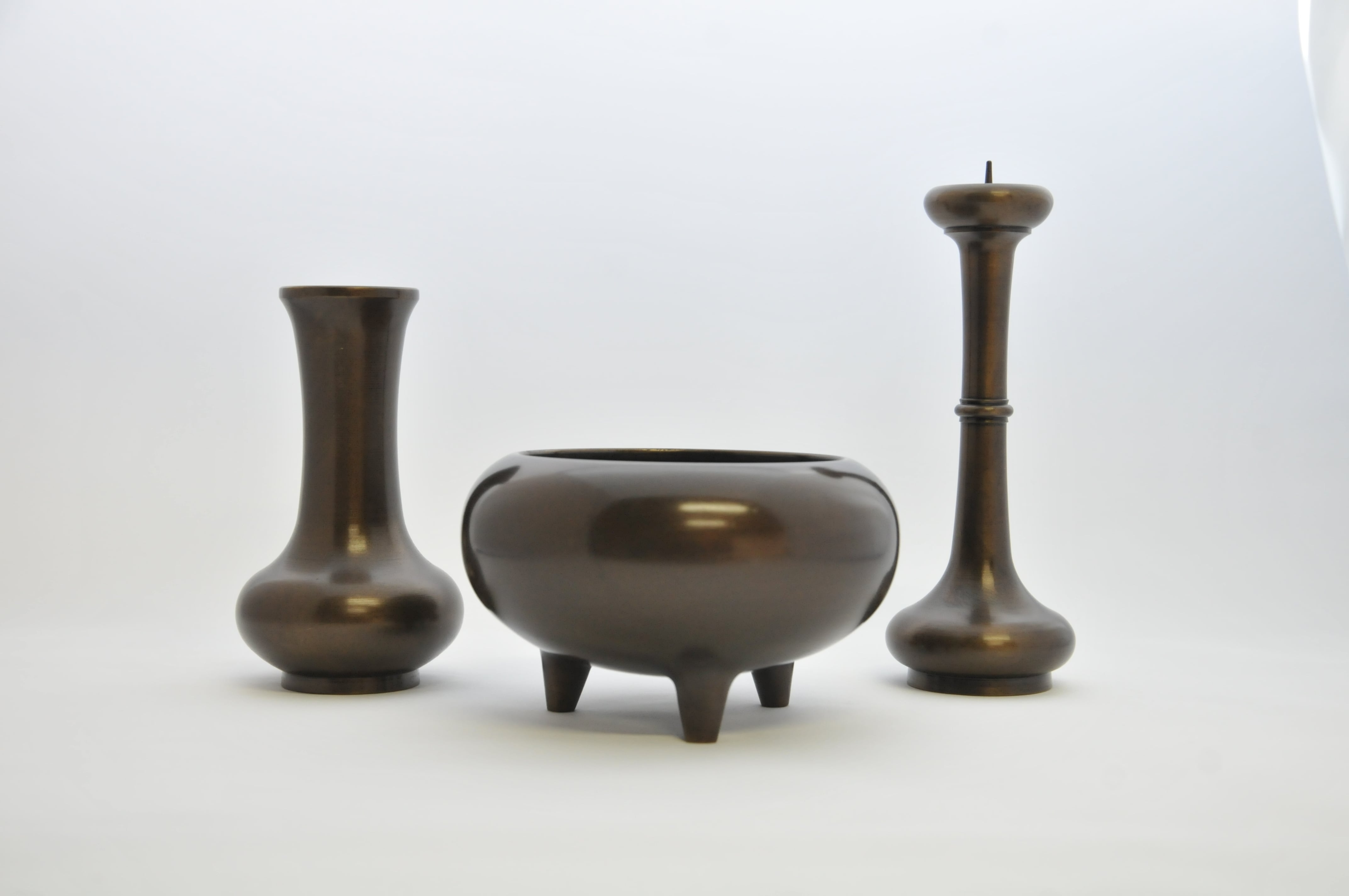 燭台(ローソク立)、香炉、花立、線香差しの4つが含まれた具足セットです